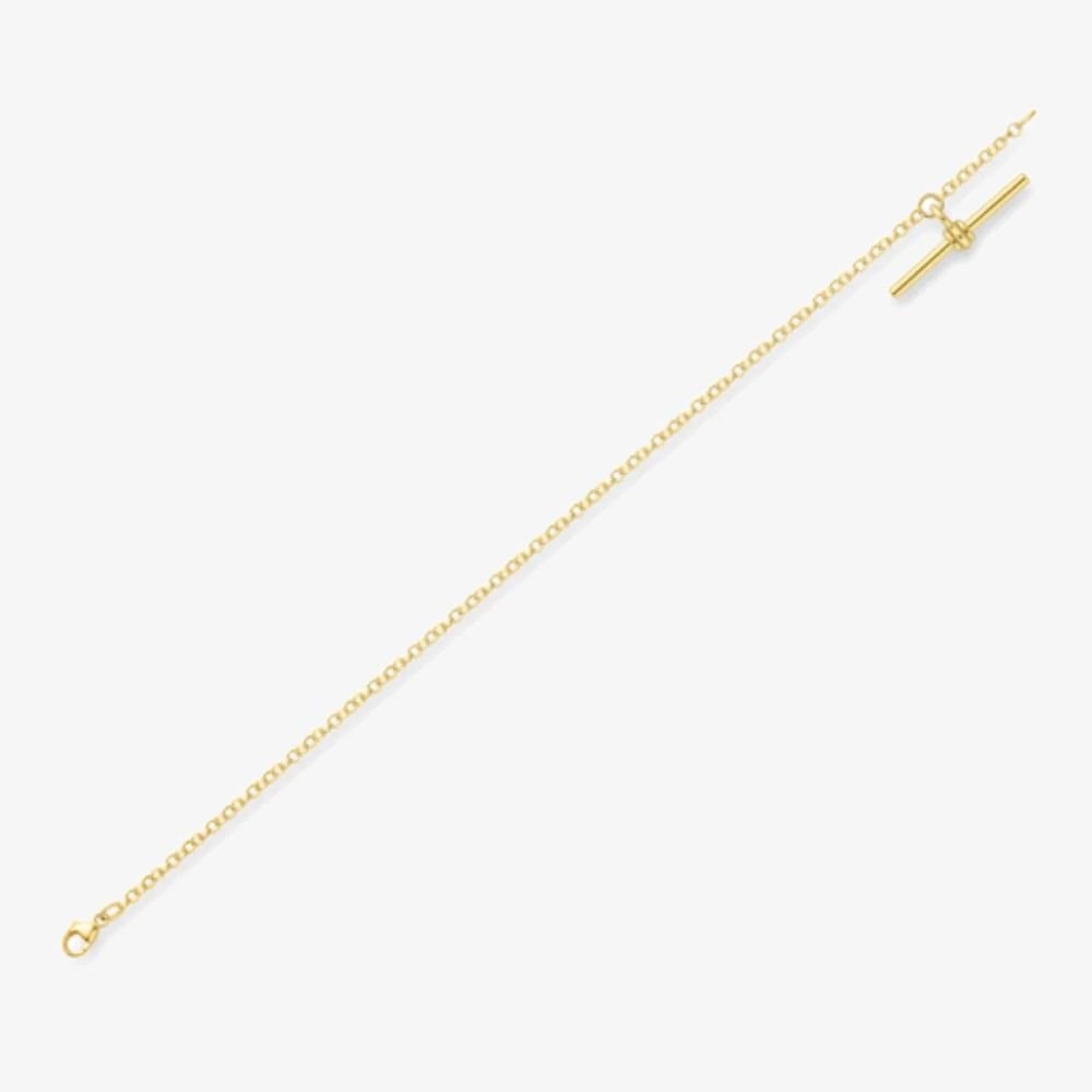 Classic 9ct yellow gold belcher link bracelet with a T-Bar drop charm and lobster clasp fastening. Perfect for adding a touch of elegance to any outfit.
