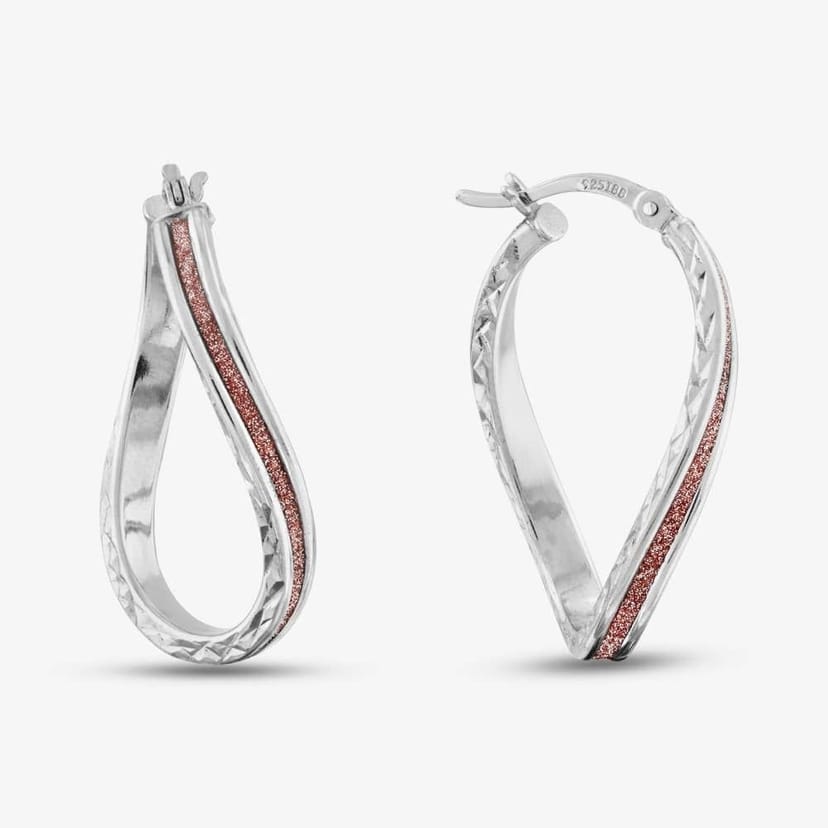 Elegant creole earrings from T.H.Baker, featuring a rhodium-plated sterling silver base with a rose gold stardust texture. These 19mm x 28.5mm earrings add a touch of glamour to any outfit.