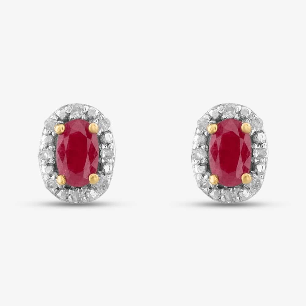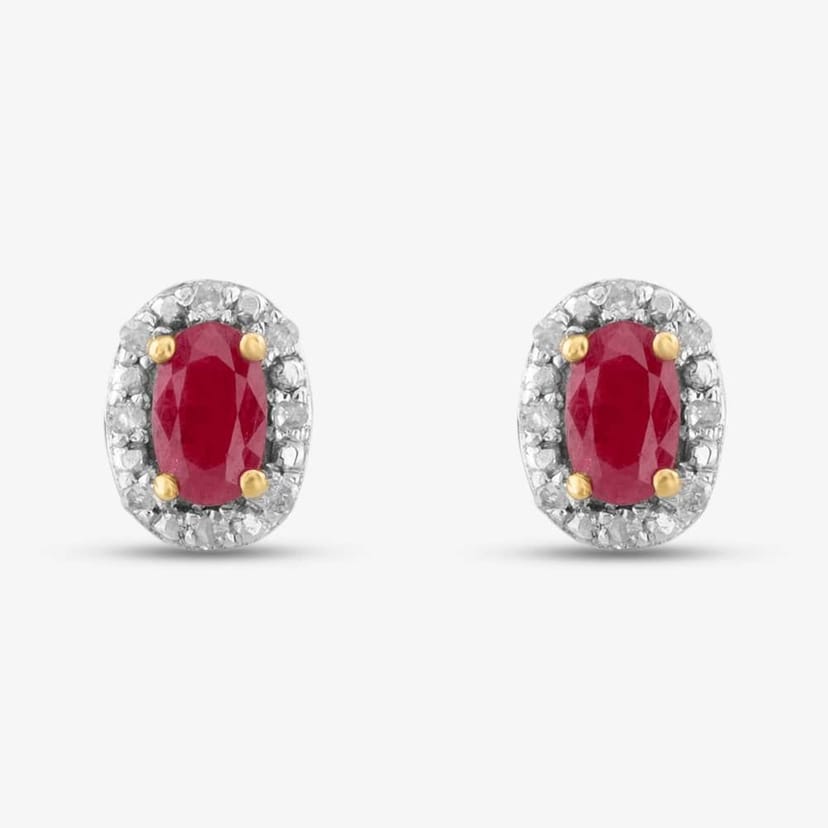 Elegant 9ct white gold earrings featuring a stunning oval ruby surrounded by a halo of sparkling diamonds. Perfect for adding a touch of glamour to any outfit.