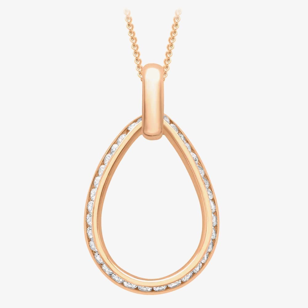 Sophisticated open teardrop pendant crafted from 9ct rose gold and adorned with sparkling Cubic Zirconia. An elegant addition to any jewellery collection.