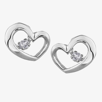 These elegant stud earrings are crafted from 9ct white gold and feature a heart-shaped design with a floating diamond. A perfect touch of sparkle for any occasion.