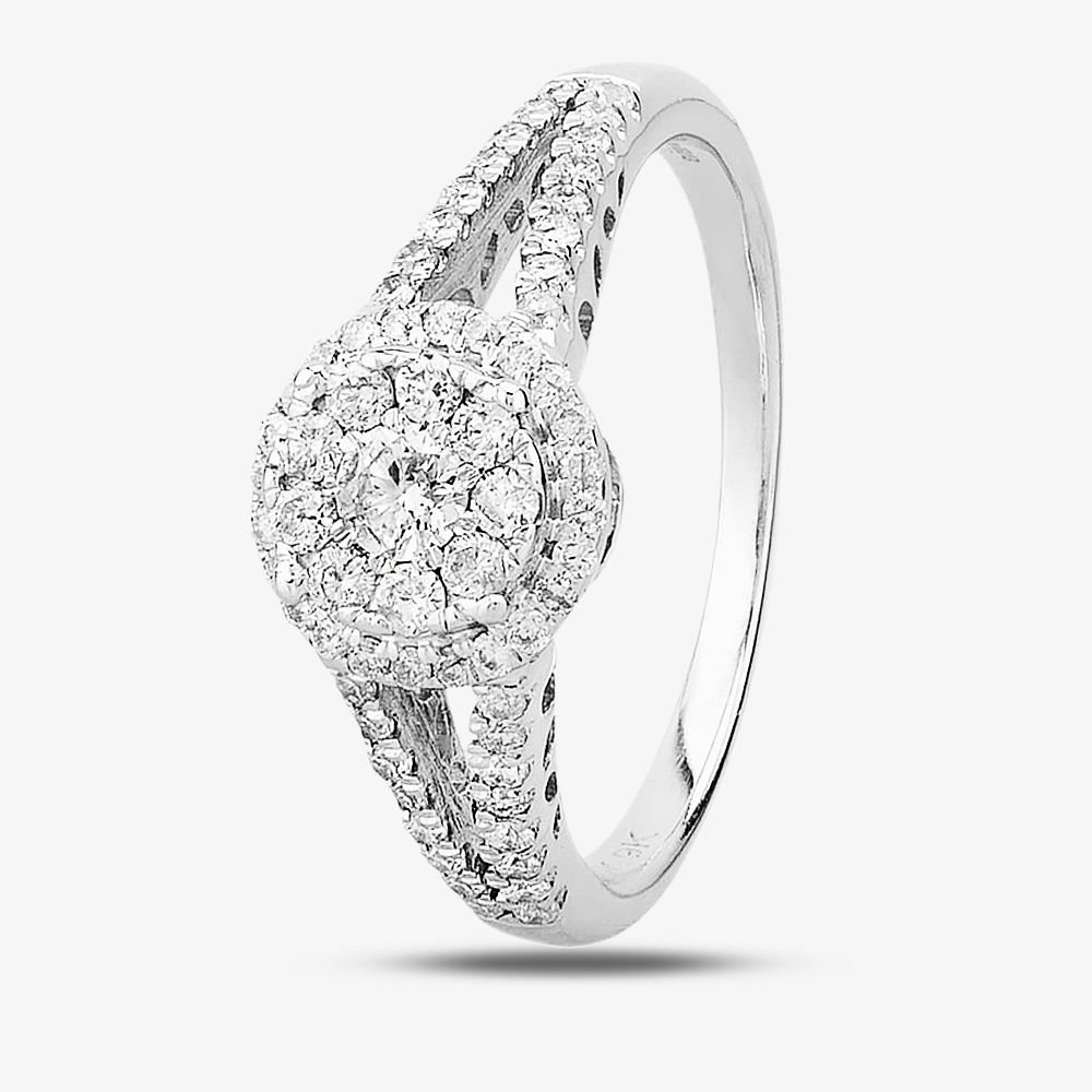 The T.H.Baker 9ct White Gold 0.50ct Diamond Halo Cluster Ring is made from white gold, diamond.