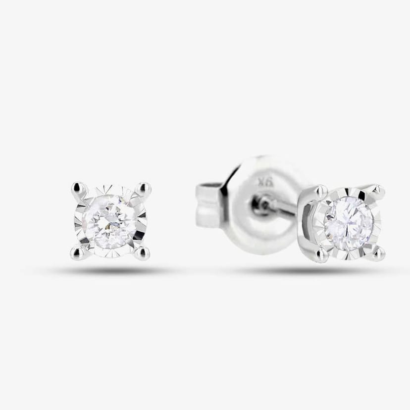 View Debenhams's returns policyChic 9ct white gold earrings featuring a 0.10ct diamond in a four claw setting. Perfect for adding a touch of sparkle to any outfit.
