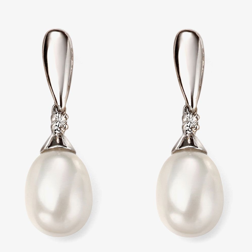 The T.H.Baker Silver Freshwater Pearl Dropper Earrings is made from pearl, diamond, white gold.