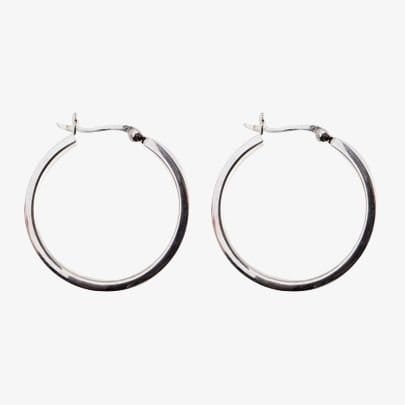 The T.H.Baker Women's Silver Hoop Earrings is made from sterling silver.