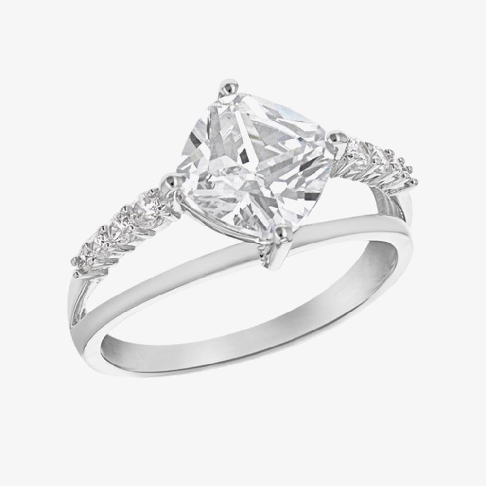 The T.H.Baker Silver Cubic Zirconia Double Split Shoulder Ring is made from silver, cubic zirconia.