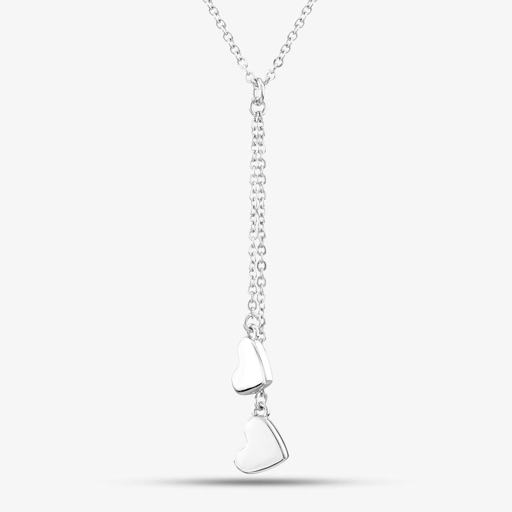 The T.H.Baker Women's Silver Two Plain Heart Chain Dropper Necklace is ideal for casual, evening, date-night.