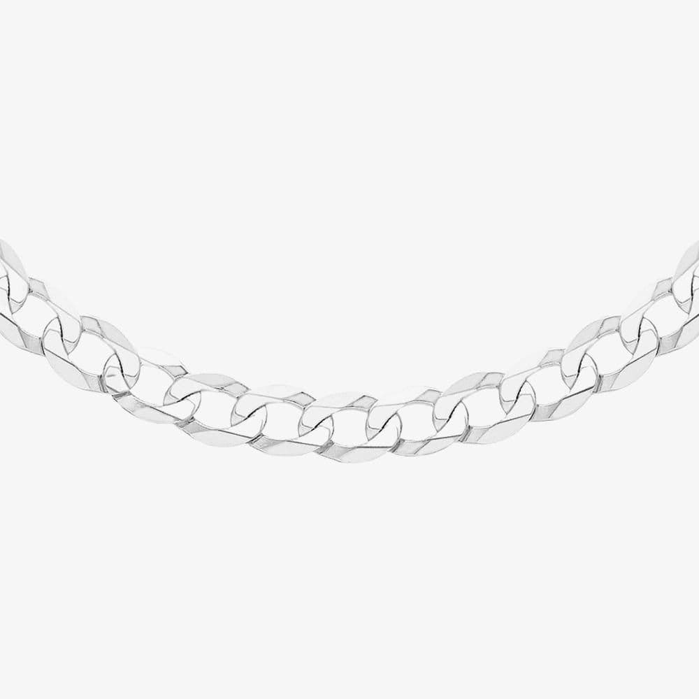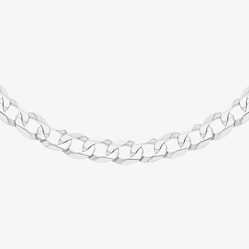This classic sterling silver 20-inch flat curb chain necklace features a 5.1mm wide design and a lobster clasp fastening. Ideal for layering or as a stand-alone piece.