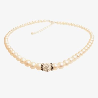 The T.H.Baker Silver White Pearl Cubic Zirconia Necklace is made from zircon, sterling silver, pearl.