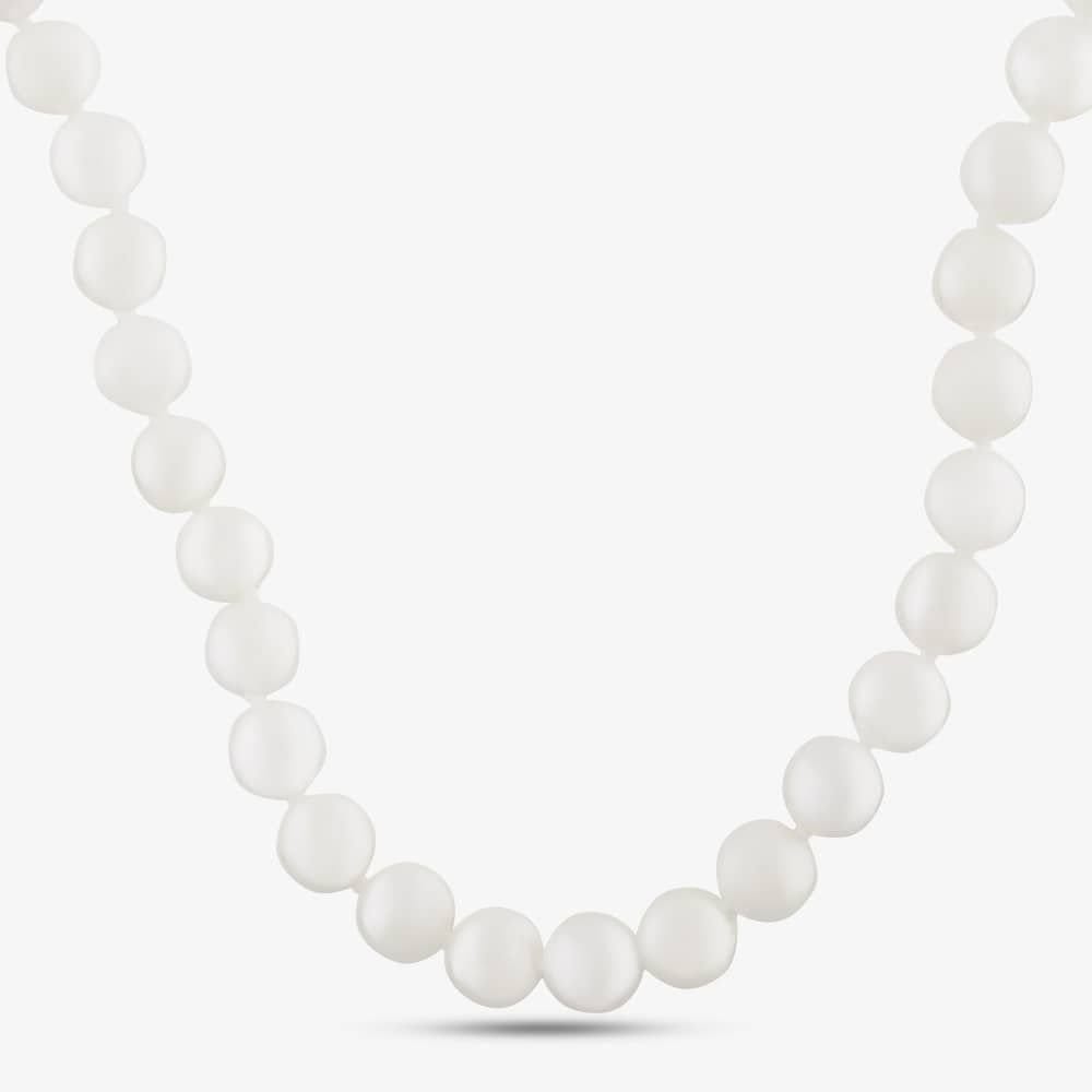 The T.H.Baker White Akoya Pearl Necklace in 9ct Yellow Gold is available in sizes 18 INCHES.