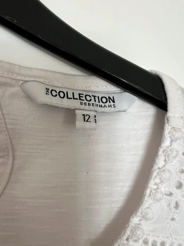 White Cotton Dress from The Collection Debenhams, a versatile and comfortable garment perfect for summer occasions. The dress features a lightweight cotton fabric with delicate lace details, ensuring a soft and breathable fit. Ideal for holidays and beach outings, it is fully lined for added comfort. Size 12, true to size.