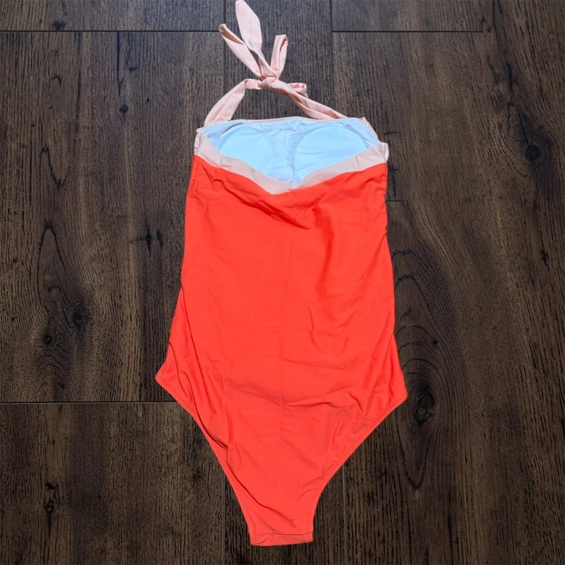 The The Unbranded Brand Neon Coral Halterneck One-Piece Swimsuit is available in sizes S.