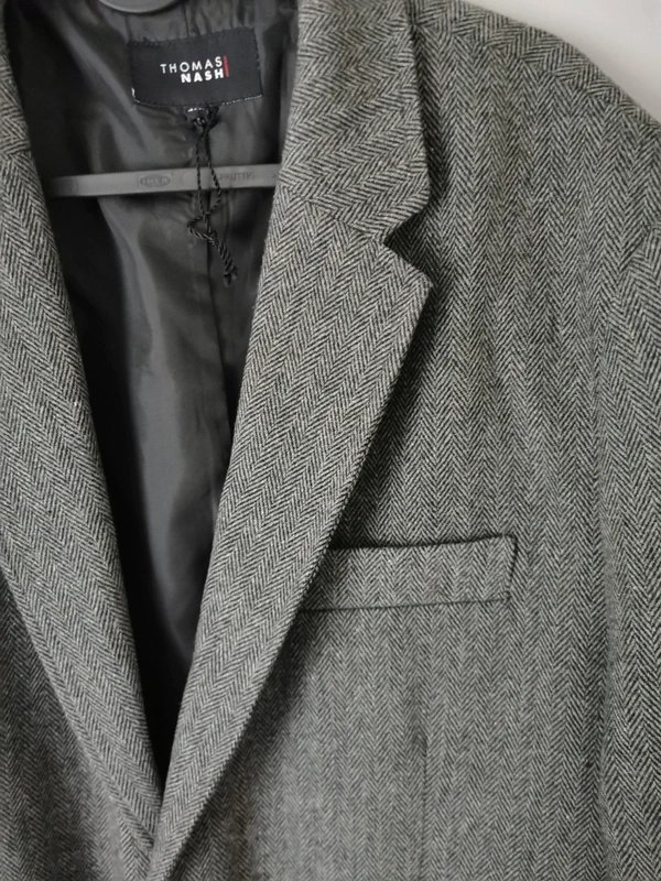 Designed with a grey herringbone pattern, this Thomas Nash blazer features a notch lapel, fully lined interior, and a 2-button front. The wool blend fabric ensures comfort and quality, making it ideal for both work and casual wear.