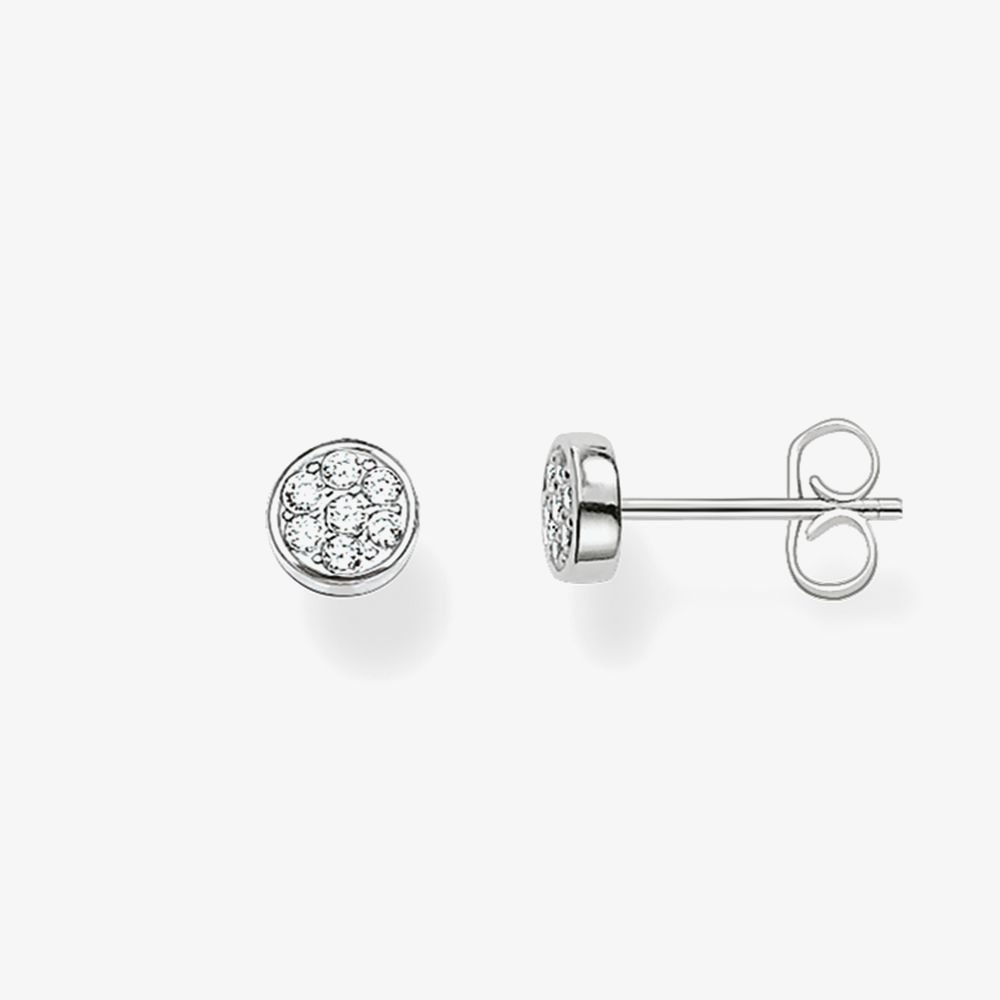 A pair of silver stud earrings from Thomas Sabo, featuring a cubic zirconia centre and a pave setting. Ideal for adding a touch of sparkle to any outfit.