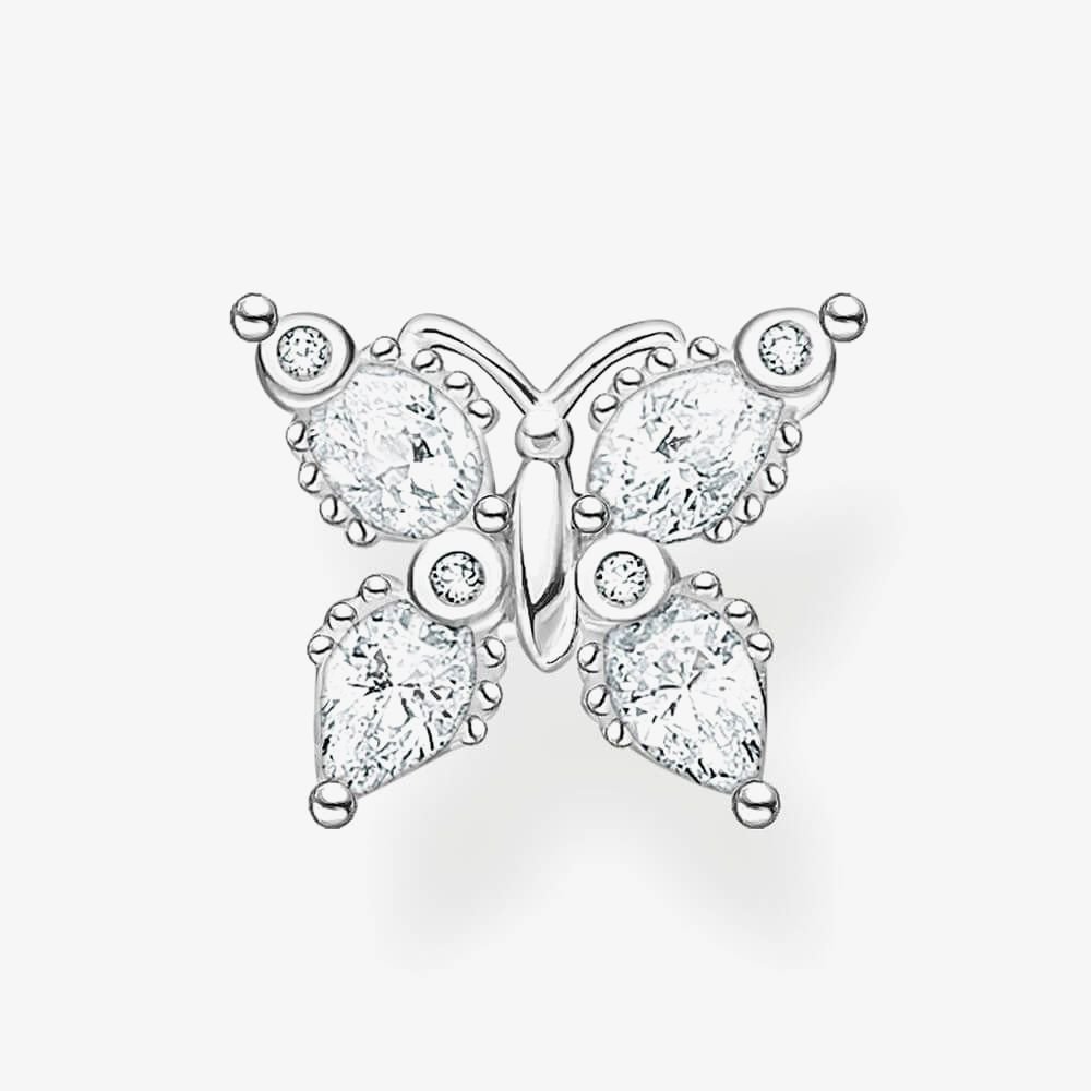Beautiful butterfly single stud earring from THOMAS SABO. Crafted in Sterling Silver, it features sparkling cubic zirconia stones. A delicate piece measuring approximately 0.80 cm in height and 0.90 cm in width.