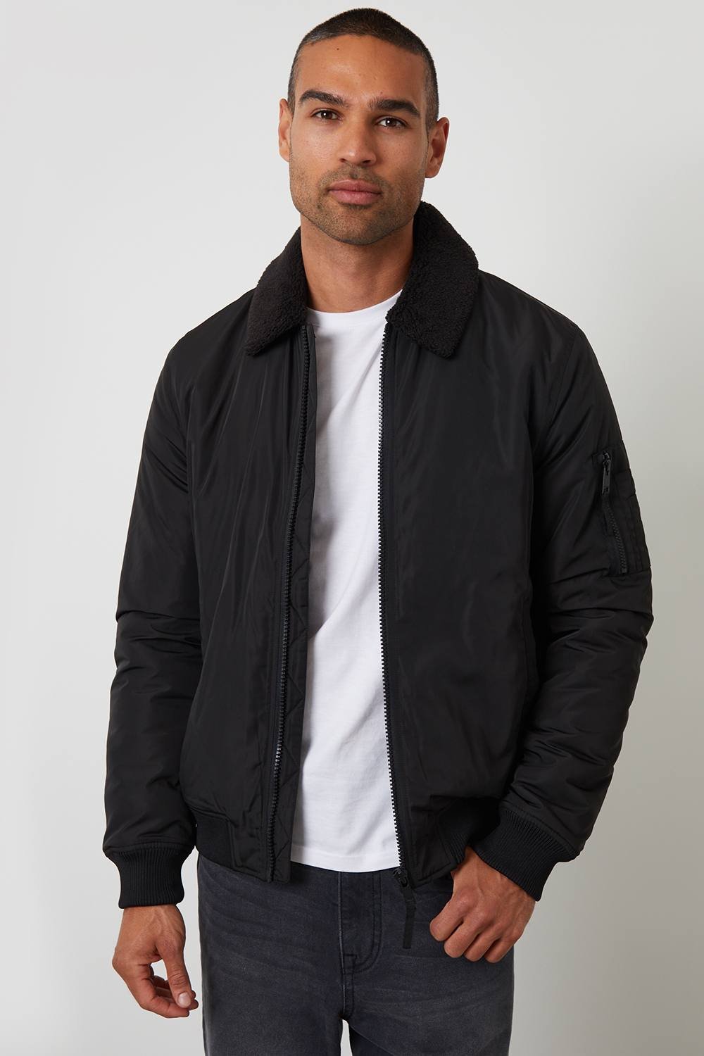 Add an essential layer to your outfit with this lightweight borg lined collared jacket from Threadbare. Fully lined with cosy borg fabric for extra warmth, it features a soft borg collar and a storm guard zip fastening. Ribbed cuffs and hem give a snug fit, while welt pockets offer everyday practicality.