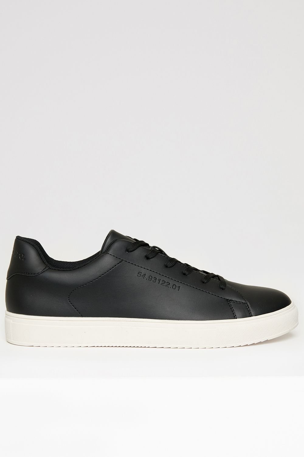 Classic black faux leather court trainers from Threadbare. Featuring a flat lace-up fastening, cushioned insole, and soft lining for all-day comfort. The thermoplastic sole offers flexibility and grip.