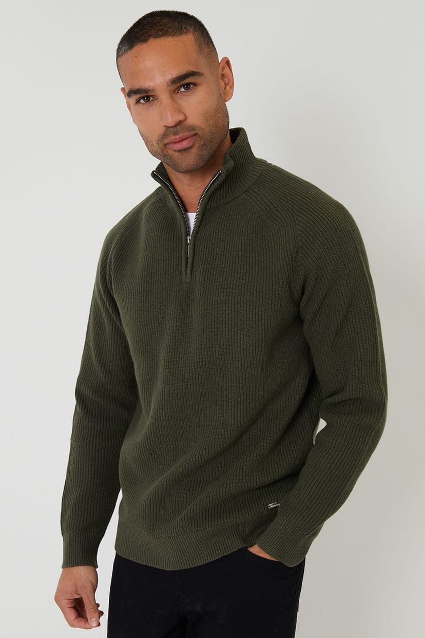 The Threadbare Green Cotton Blend Quarter Zip Jumper is made from cotton, polyester.