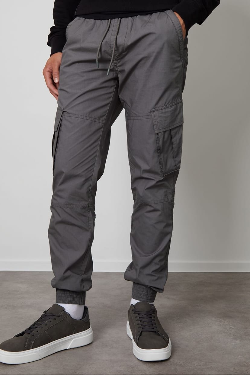 Upgrade your casual look with these slim fit, cuffed cargo trousers from Threadbare. Made from cotton, they feature an elasticated waist for comfort, fly fastening, and drawcords. With four pockets and two cargo style pockets on the legs, these trousers are perfect for everyday wear.