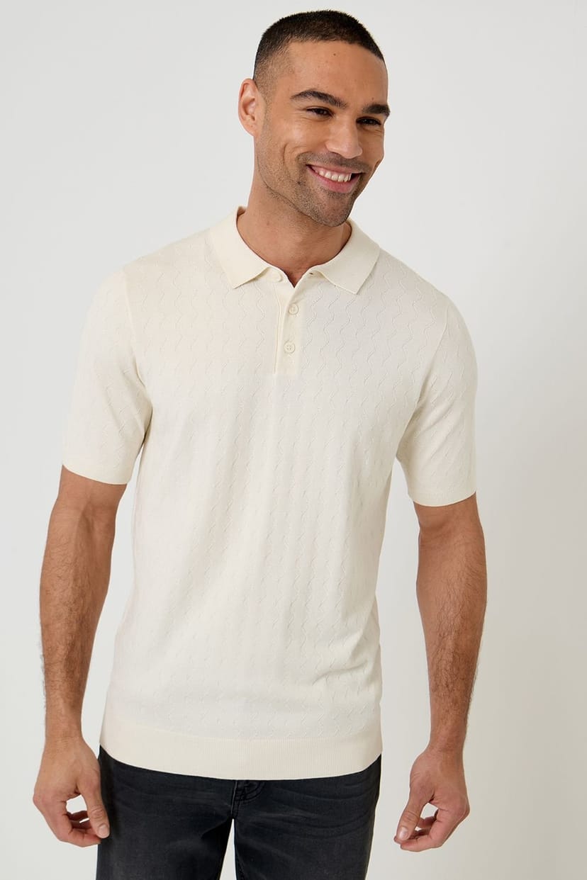 The Threadbare Men's Zig Zag Stitch Knitted Polo in Natural is ideal for smart-casual, everyday, business.