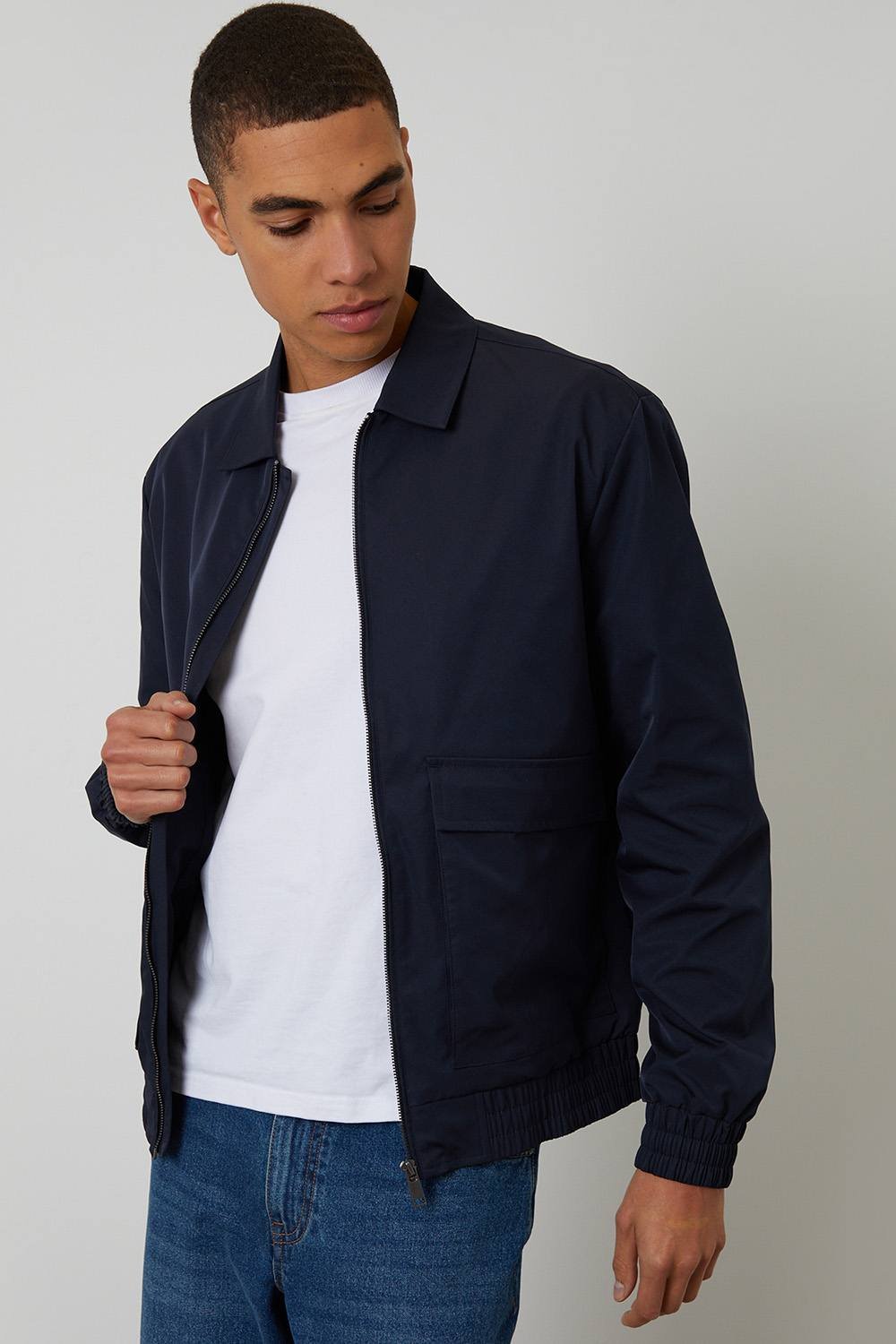 The Threadbare Navy Showerproof Zip Up Jacket is ideal for casual, everyday.