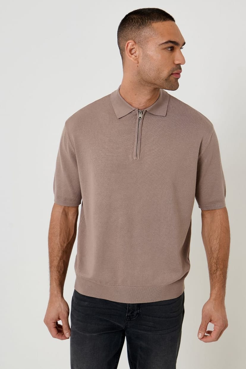 The Threadbare Taupe Jersey Quarter Zip Polo for Men is ideal for casual, everyday, smart-casual.