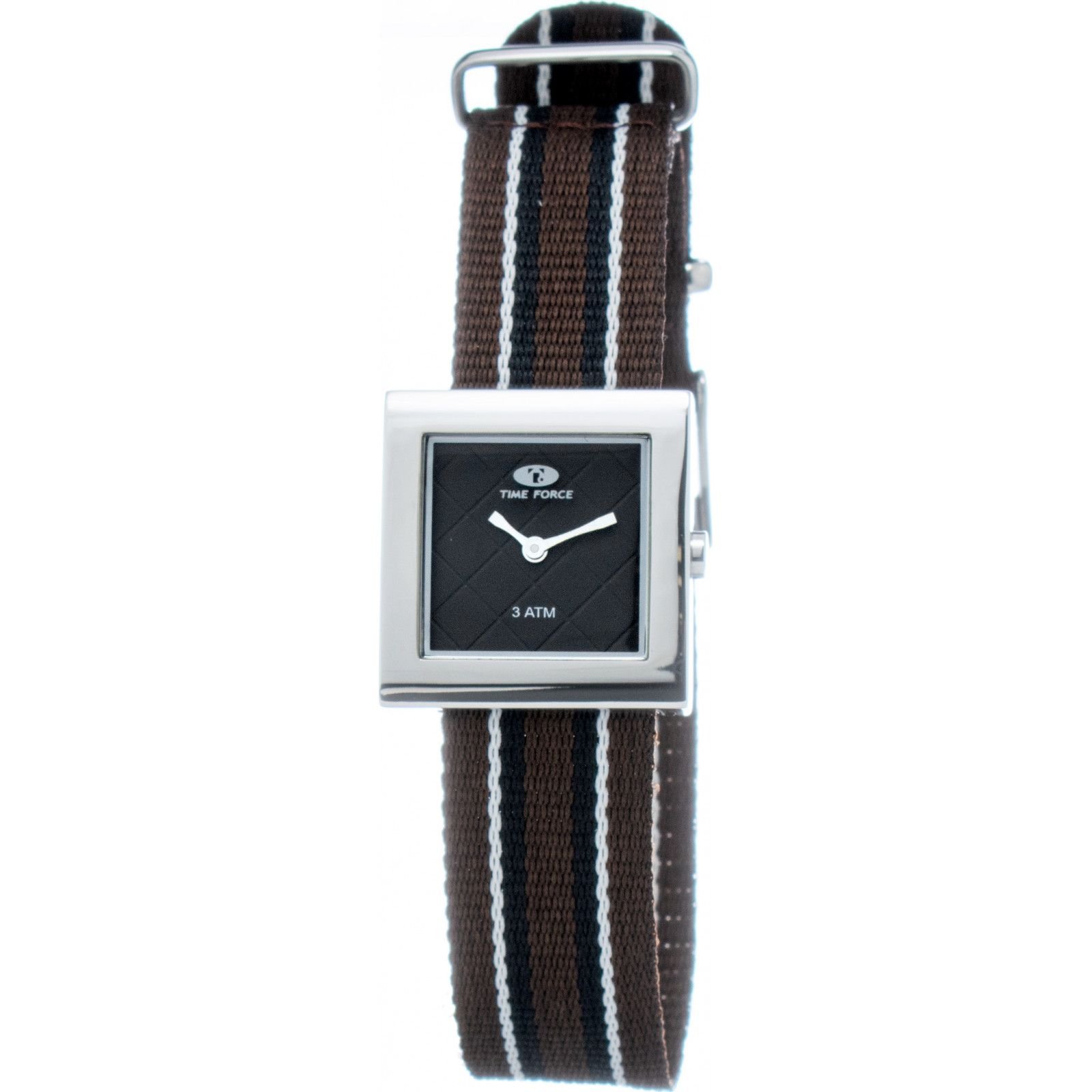 Stylish multicolor ladies watch from Time Force. Features a square dial with white hands and a brown and white striped strap. Ideal for everyday wear and various occasions.