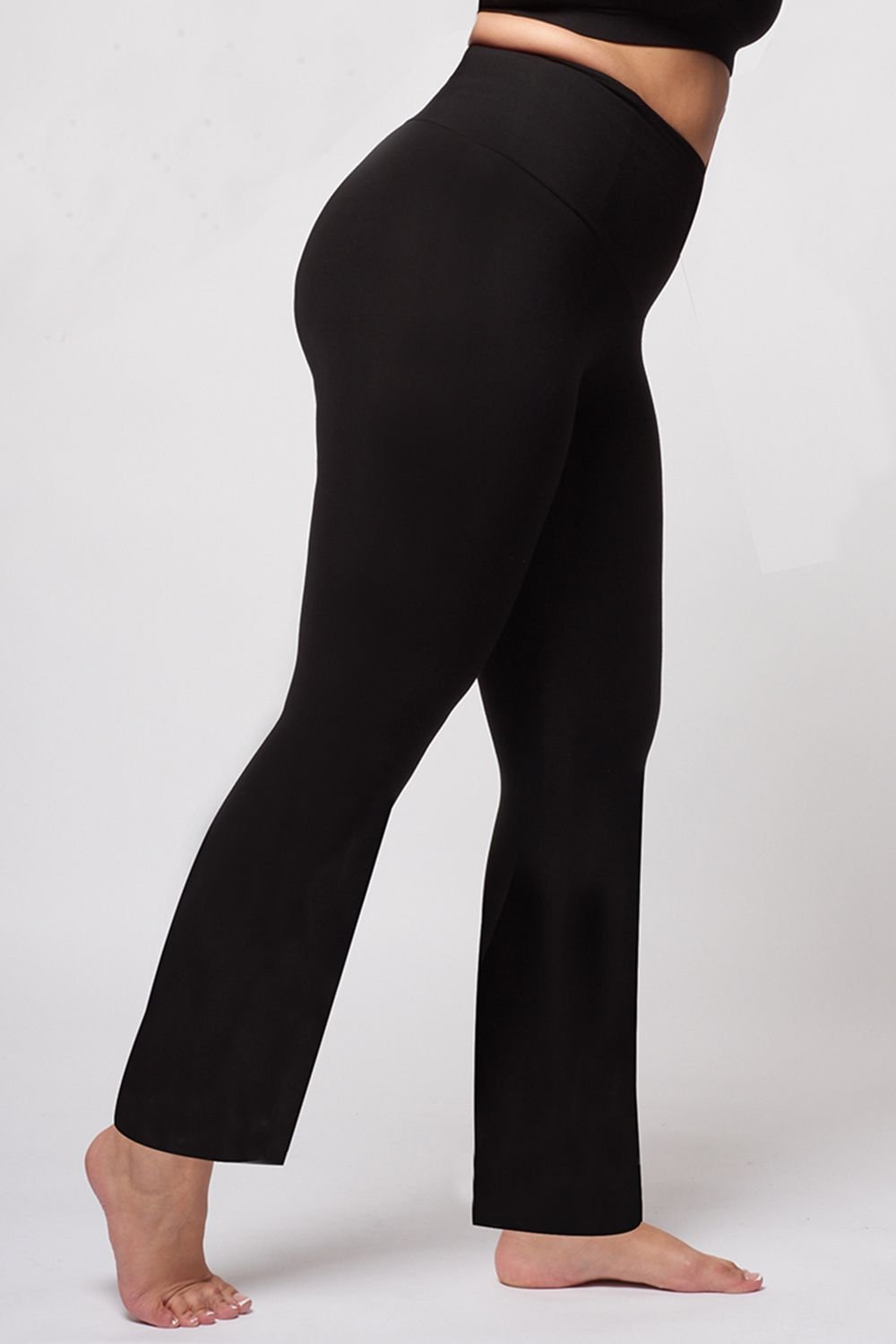 Sleek black compression pants designed for curvy figures. Made from exclusive Figure Firming fabric that smooths and contours the body. Features a tummy control and curve bootcut for a flattering fit.