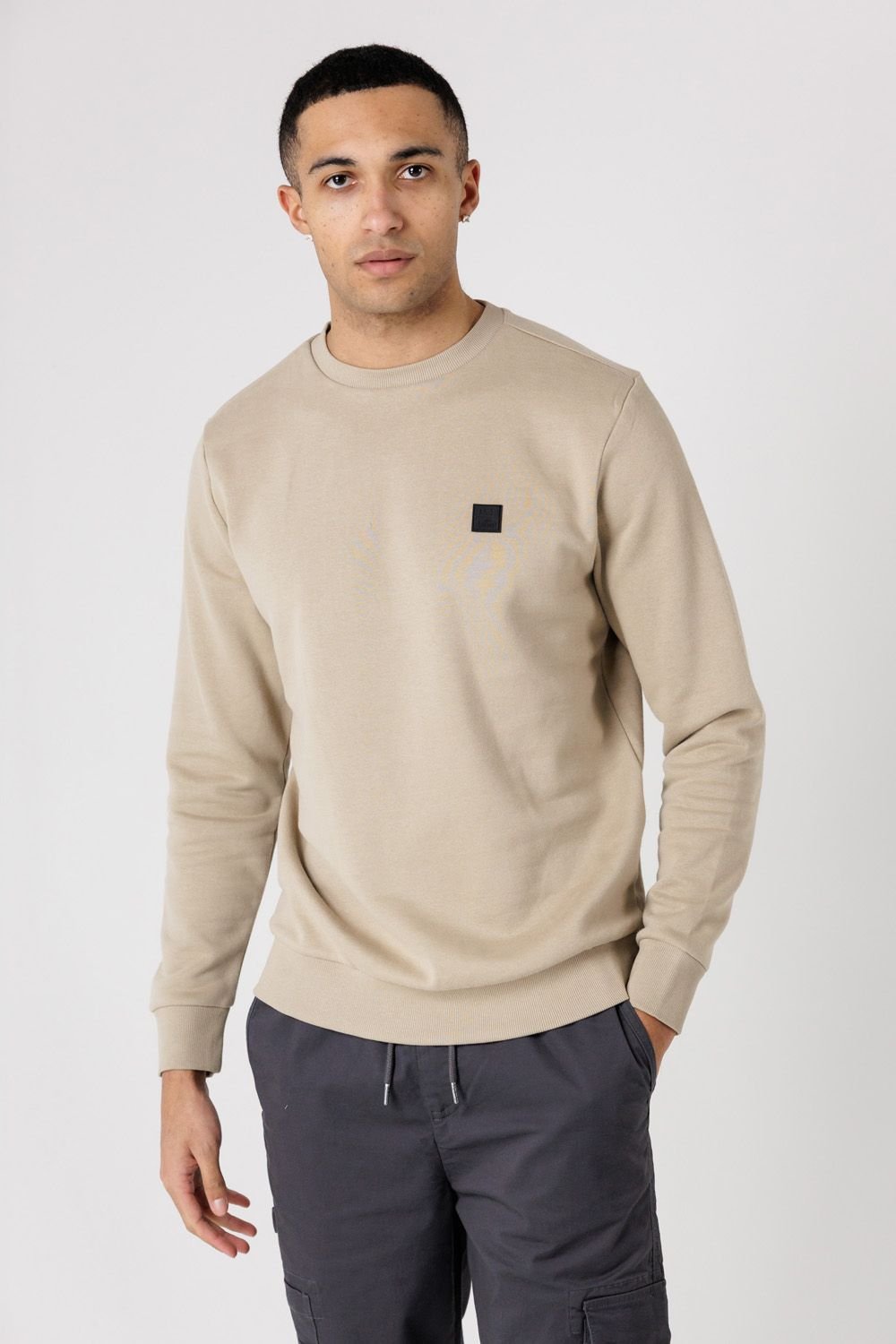 Casual crew sweatshirt in beige from Tokyo Laundry. Made from soft cotton with a brushed back fleece interior, it features a subtle chest logo badge. Ideal for layering or wearing solo, combining comfort with understated style.