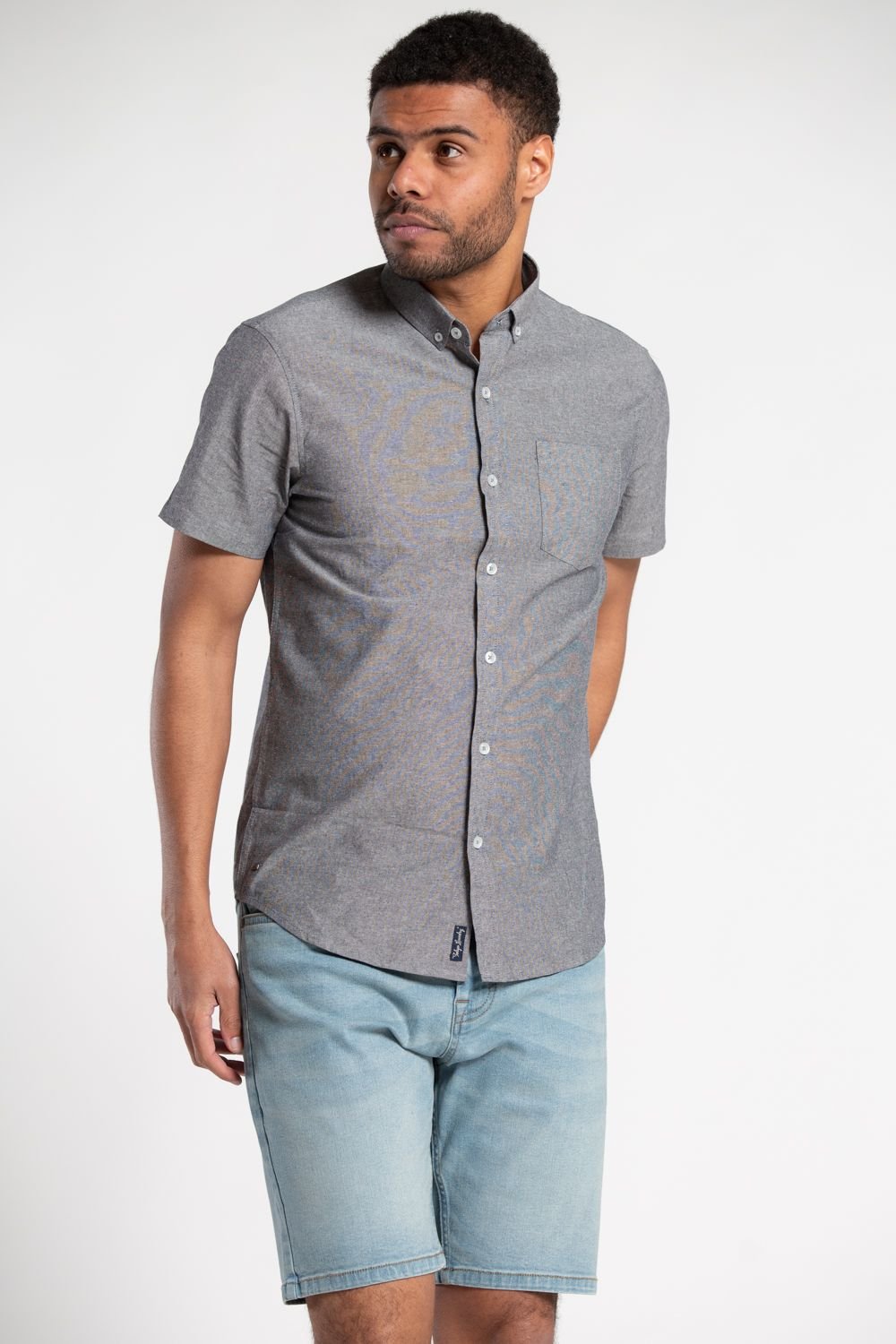 Elegant black chambray short-sleeve shirt from Tokyo Laundry. Made from 100% cotton, this button-down shirt is perfect for any occasion. The classic design features a comfortable fit and stylish look. Ideal for casual and smart-casual settings.