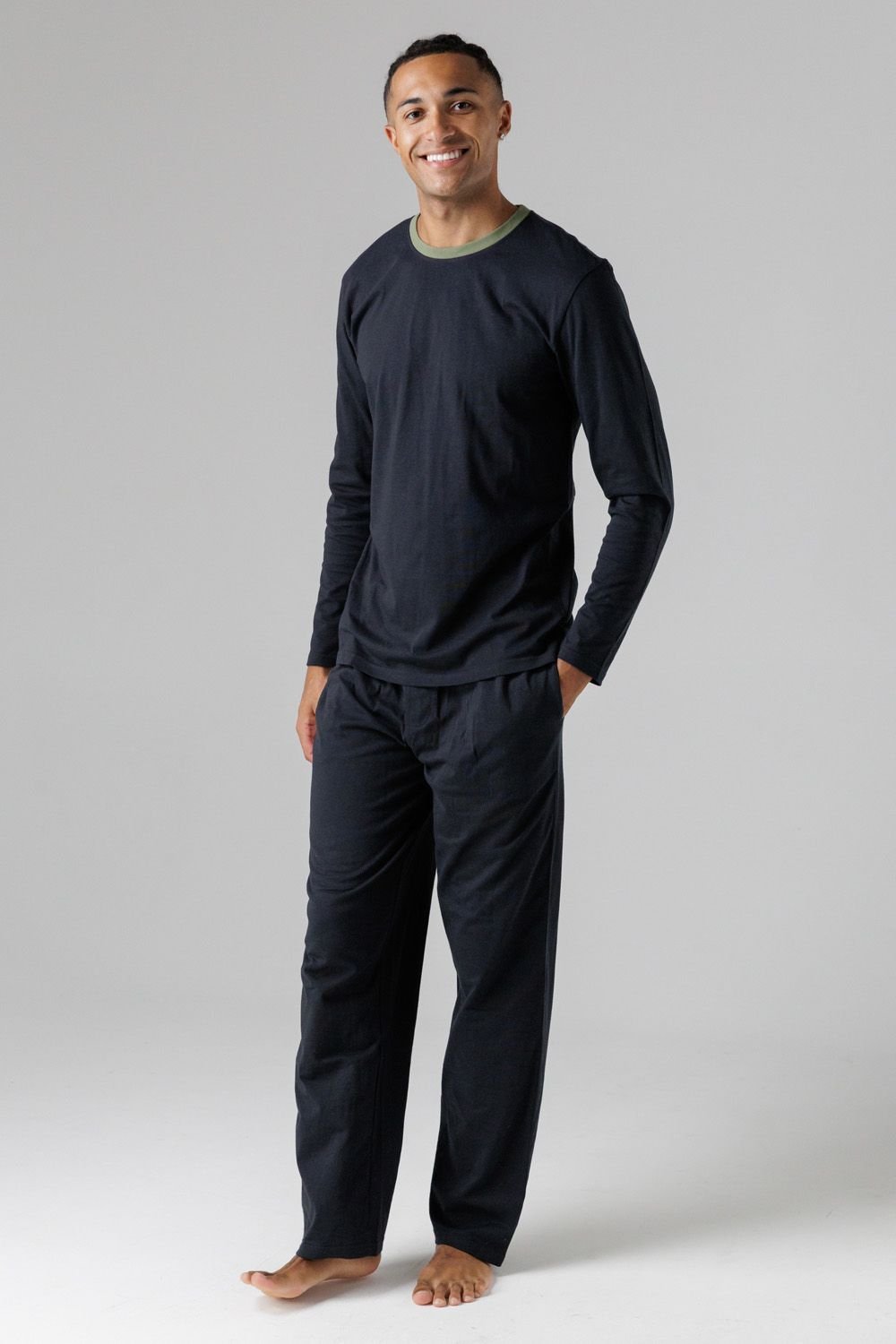 Pair with a pair of black socks and a black beanie for a complete sleepwear look.