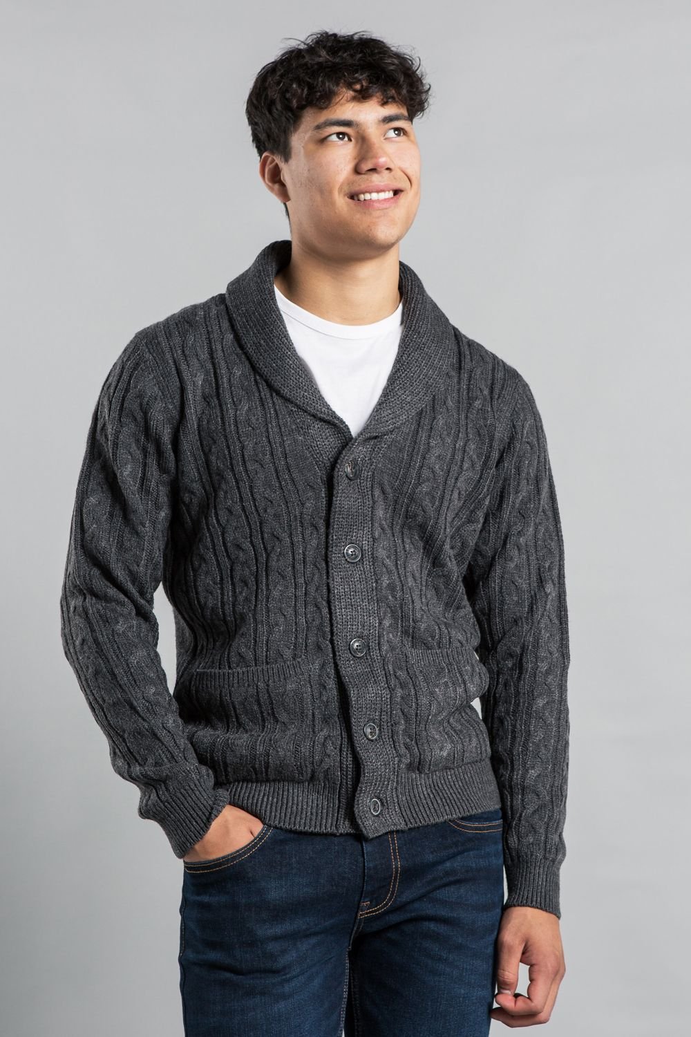 The Tokyo Laundry Charcoal Shawl Neck Cable Knit Cardigan is ideal for casual, everyday, outdoor.