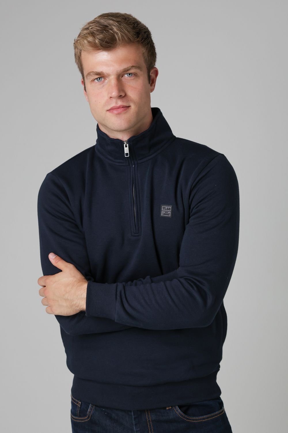Elevate your casual wardrobe with this dark navy cotton blend funnel neck sweatshirt from Tokyo Laundry. Crafted from a soft cotton blend, it offers comfort and warmth for cooler days. The funnel neck and quarter zip add a sporty edge, while ribbed cuffs and hem provide a snug fit. Perfect for layering or wear.