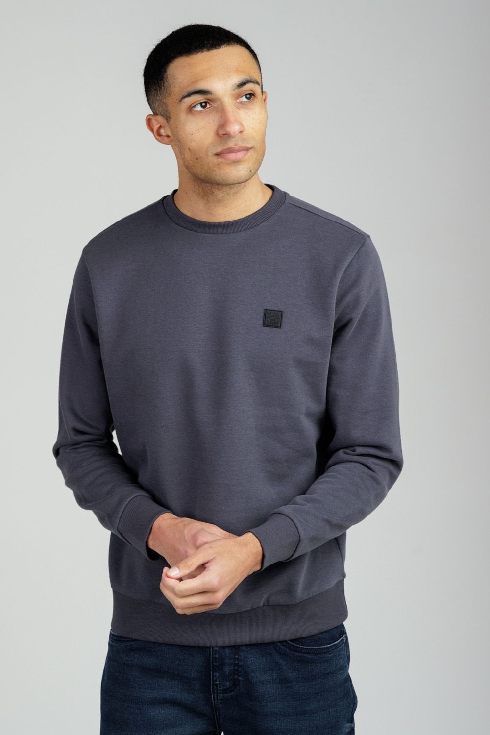 Casual crew sweatshirt in grey from Tokyo Laundry. Made from soft cotton with a brushed fleece interior, it features a subtle chest logo for understated style. Ideal for layering or wearing solo.