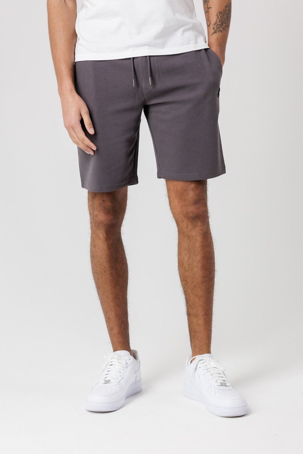 The Tokyo Laundry Men's Grey Jogger Shorts with Logo is ideal for casual, everyday, running errands.