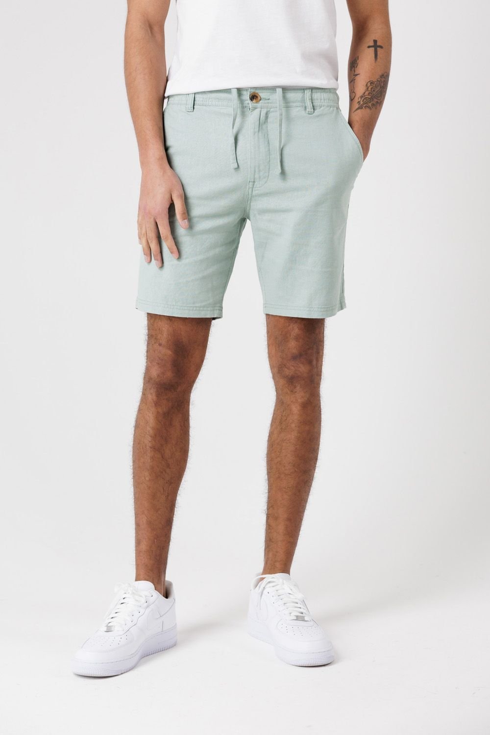 The Tokyo Laundry Men's Light Green Cotton Linen Shorts is made from cotton, linen.