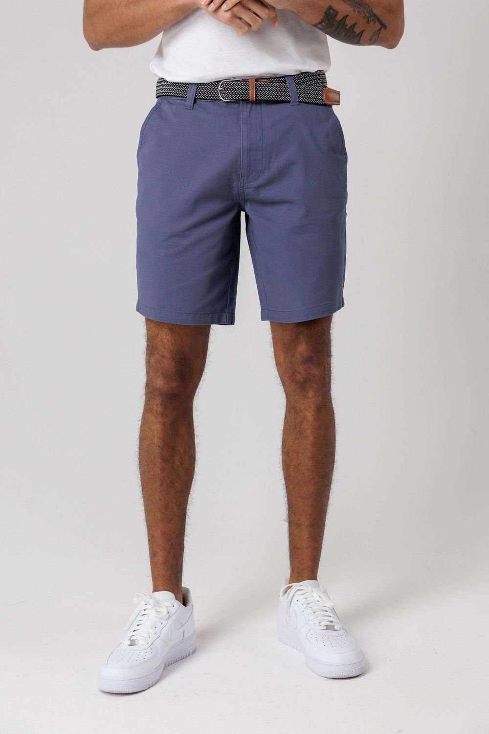 Casual mid blue cotton twill shorts with a clean, relaxed look. Designed with a belt, side pockets, and a soft-touch finish, these shorts are perfect for warm-weather wear.