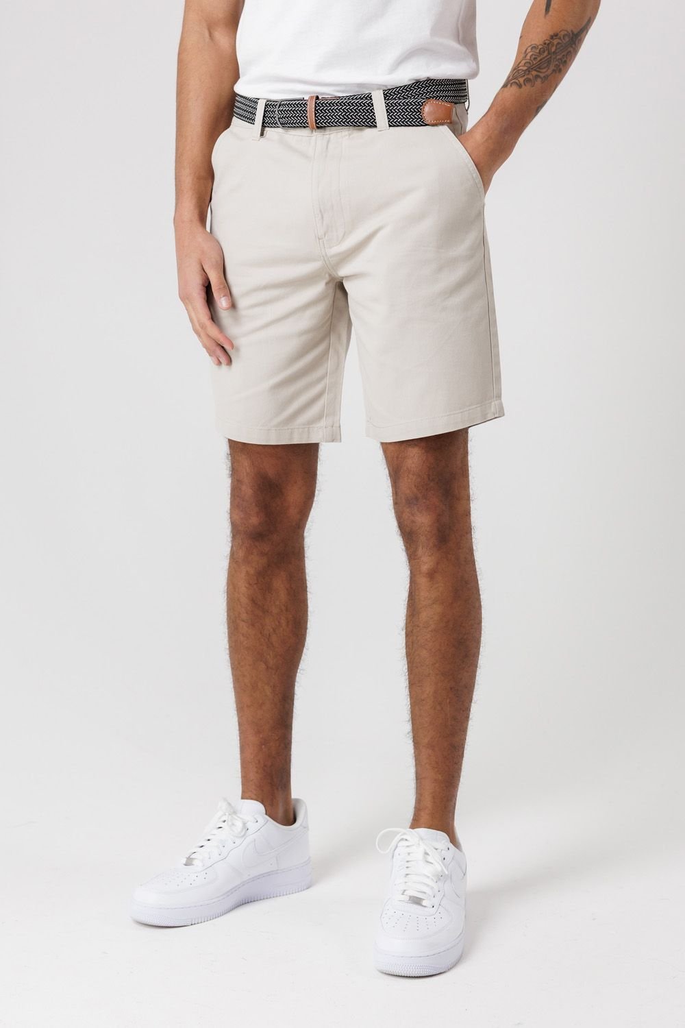 Casual stone cotton twill shorts from Tokyo Laundry. Designed for everyday comfort with a clean, casual look. Features include a belt and belt loops, side pockets, and a soft-touch finish. Perfect for warm-weather wear.