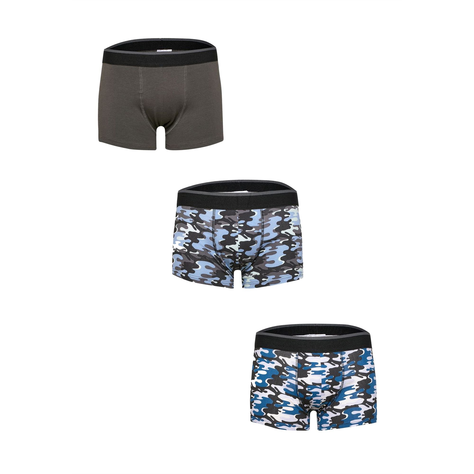 The Tom Franks Men's Camo Boxer Shorts (Pack Of 3) in Grey is ideal for everyday, casual, outdoor.