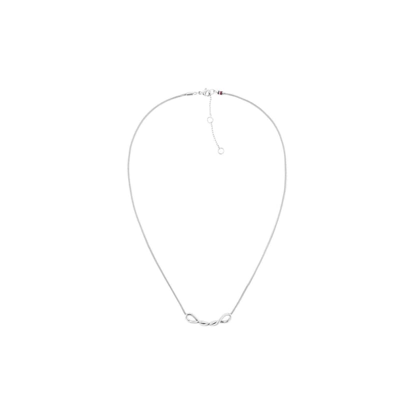 Elegant silver necklace from Tommy Hilfiger featuring a unique infinity knot design. Crafted with high-quality silver, this piece adds a touch of sophistication to any outfit.