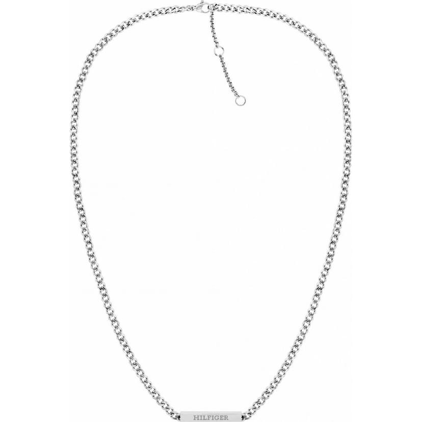 Timeless Tommy Hilfiger necklace in silver. Crafted from high-quality materials, this piece features a sleek chain design with a branded bar pendant. Perfect for adding a touch of elegance to any outfit.