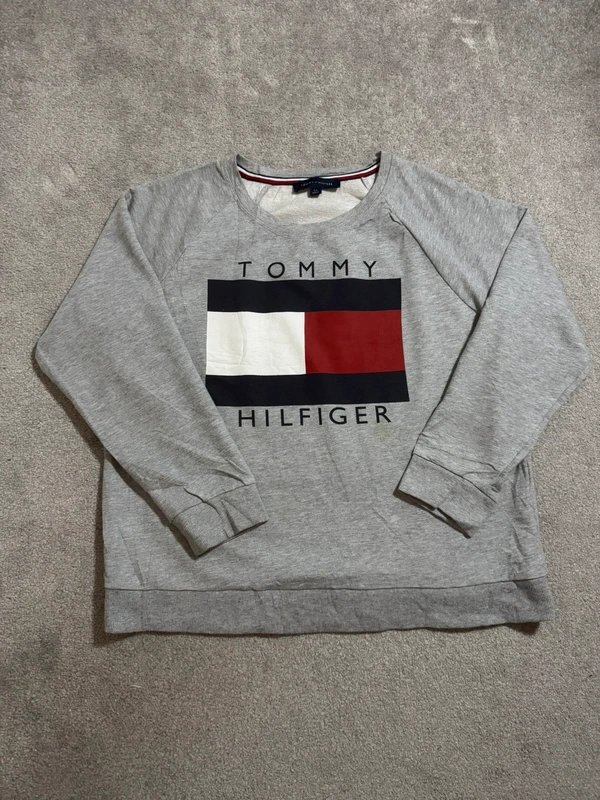 The Tommy Hilfiger Grey Fleece Pullover Sweater in Large is available in sizes L.