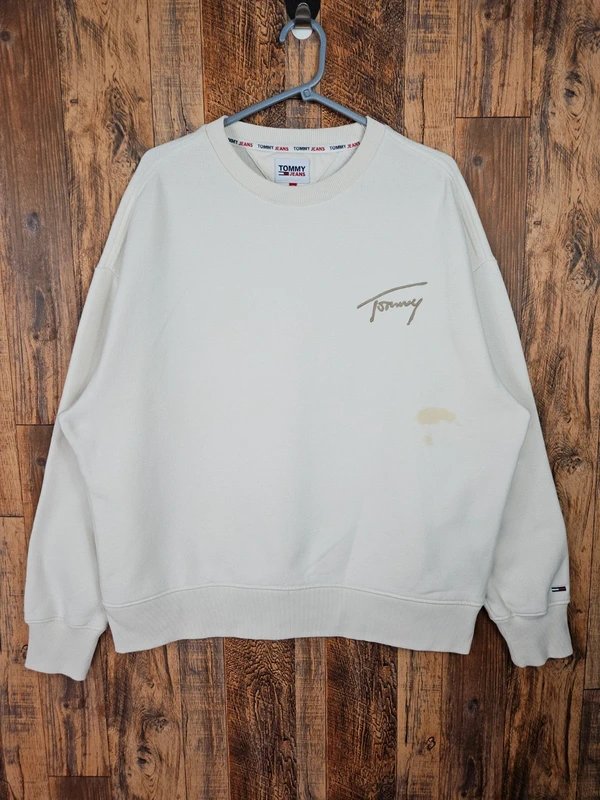 The Tommy Jeans Cream Cotton Polyester Sweatshirt is available in sizes M.