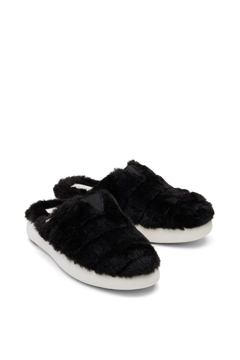 The TOMS Women's 'Alpargata Mallow' Mule in Black is made from faux fur, rubber.
