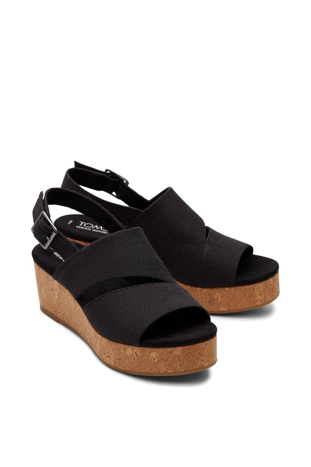 The TOMS Women's Claudine Wedge Sandal in Black is ideal for casual, everyday.