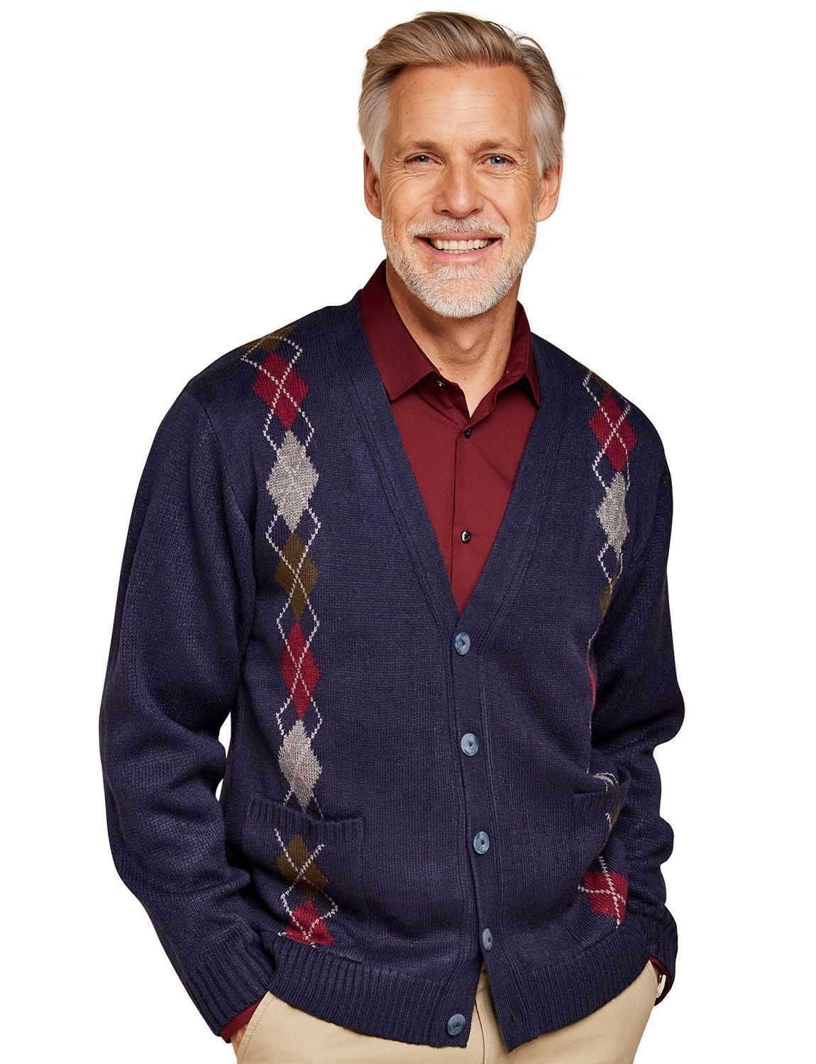 The Tootal Navy Argyle Cardigan for Men is ideal for casual, everyday, work.