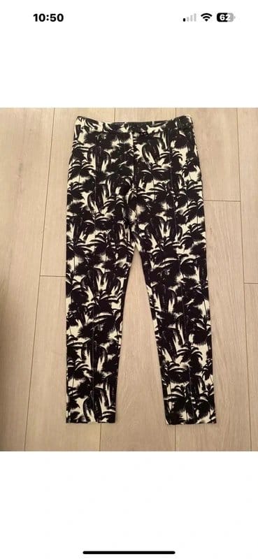 View Vinted's returns policyThese capri trousers from Topshop feature a tropical print in black and cream. They have a zip and button fastening, belt loops, and two side pockets. The inside leg measures 25 inches, making them perfect for a relaxed, summery look.