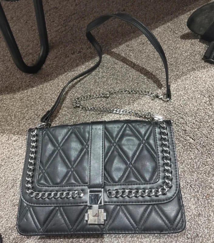 The Topshop Black Leather Quilted Handbag with Silver Clasp is ideal for evening, date-night, party.