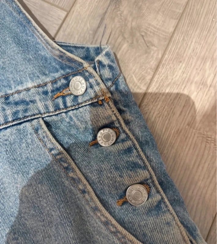 This blue denim dungaree dress from Topshop is a versatile piece, perfect for both summer and colder months. The denim fabric offers durability and a casual look, while the design allows for layering with a jumper for cooler days.