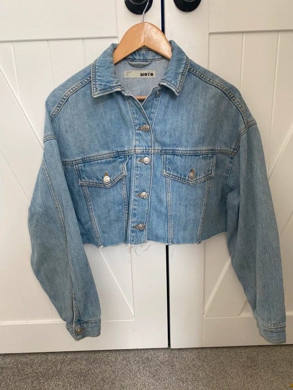 The Topshop Light Blue Cropped Denim Jacket Size 10 is available in sizes S.